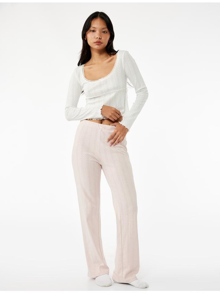 Насладитесь уютными ночами в этих длинных пижамных штанах из чистого хлопка. Прямой крой и эластичный пояс обеспечивают максимальный комфорт. Простой дизайн дополняется милой деталью в виде фийонка, которая добавляет стильности. Эти пижамные штаны идеально подходят для отдыха дома, предлагая идеальное сочетание стиля и комфорта.