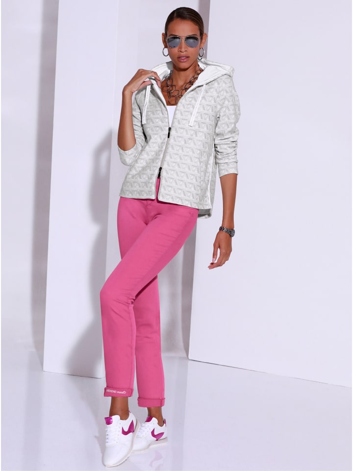 Премиальное качество с высоким содержанием хлопка: эти брюки визуально утягивают живот и подчеркивают форму ягодиц. Благодаря модному отвороту их можно носить как в укороченном, так и в закатанном виде (внутренний шов около 65 см). Они имеют 5-карманный дизайн с застежкой на пуговицу и молнию, шлевки для ремня и модный логотип контрастного цвета на одном переднем кармане и на штанине. Ширина штанины 34 см. Ремень не входит в комплект.