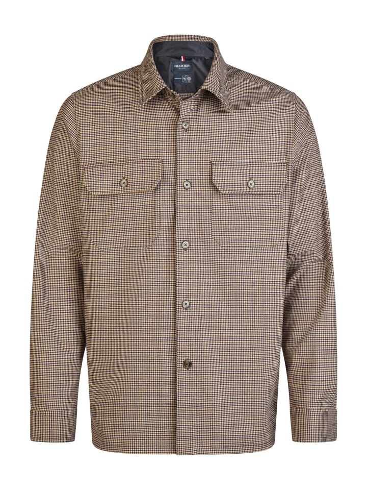 Повседневная верхняя рубашка H-ECO сочетает в себе современный стиль и экологичность. Изготовленная из высококачественной шерстяной смеси в мелкую клетку, она обеспечивает комфорт и изысканный вид. Классический крой обеспечивает свободную, но при этом приталенную посадку. Основная ткань содержит 58% полиэстера из экологически чистых материалов (сертифицировано GRS), что гарантирует экологичность производства. Эта верхняя рубашка, произведенная в ЕС, впечатляет превосходным качеством изготовления и ответственным подбором материалов.