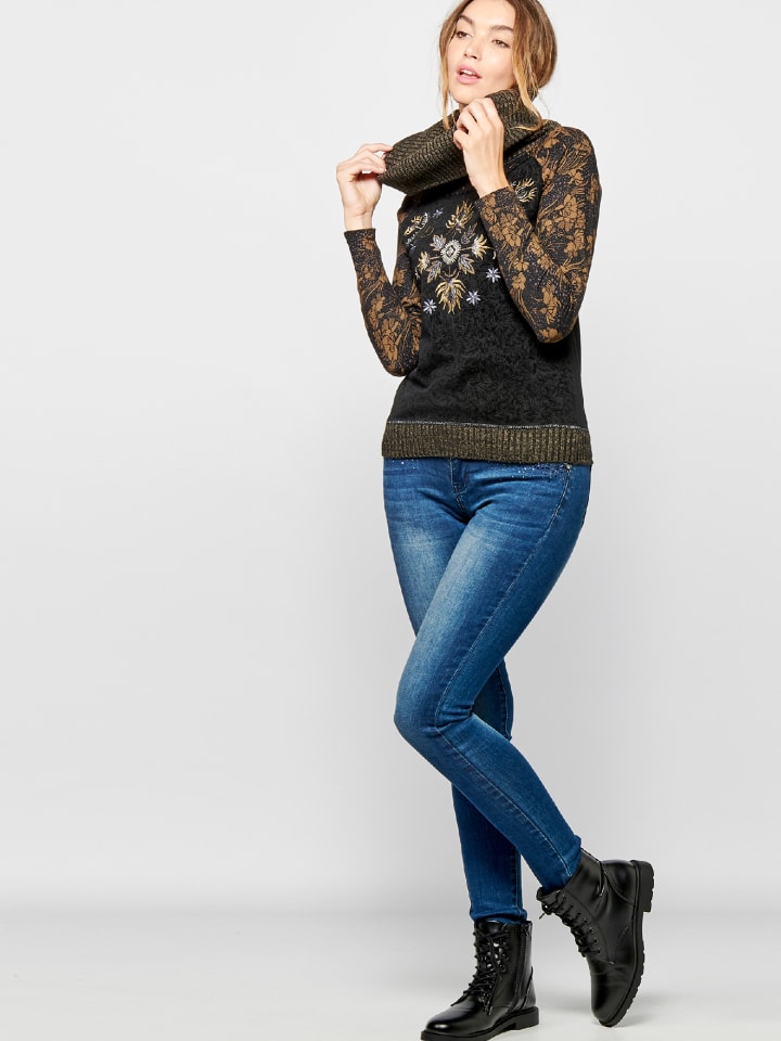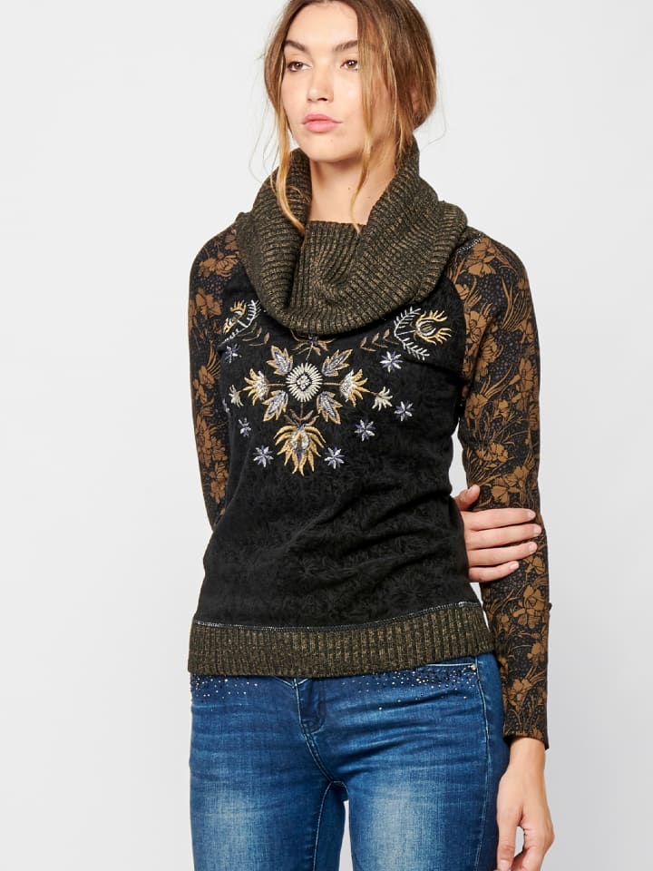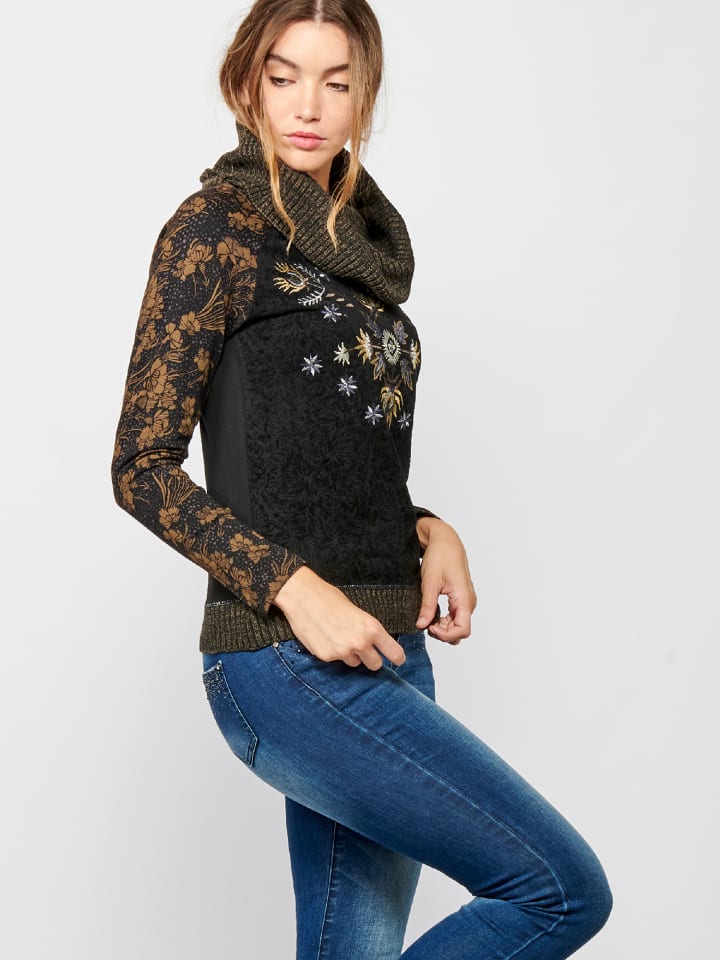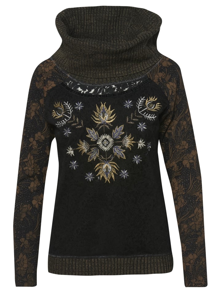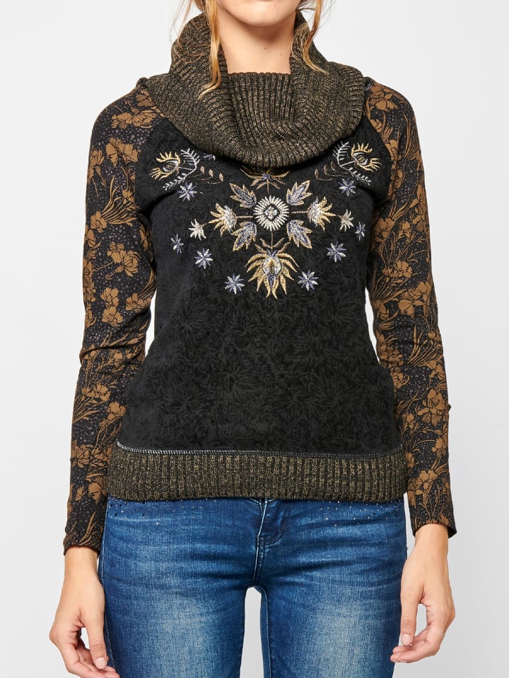 Футболка с принтом, классический крой. Трикотажная водолазка. Длинные рукава реглан. Флокированный принт, вырезы и вышивка. Трикотажный край. Состав: 100% хлопок