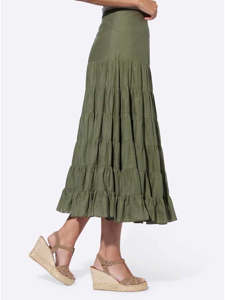 Юбка цвета хаки с несколькими ярусами Heine