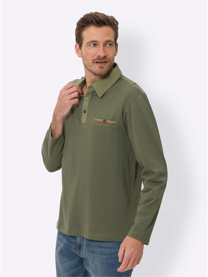 Рубашка-поло с длинными рукавами цвета хаки Sieh an!