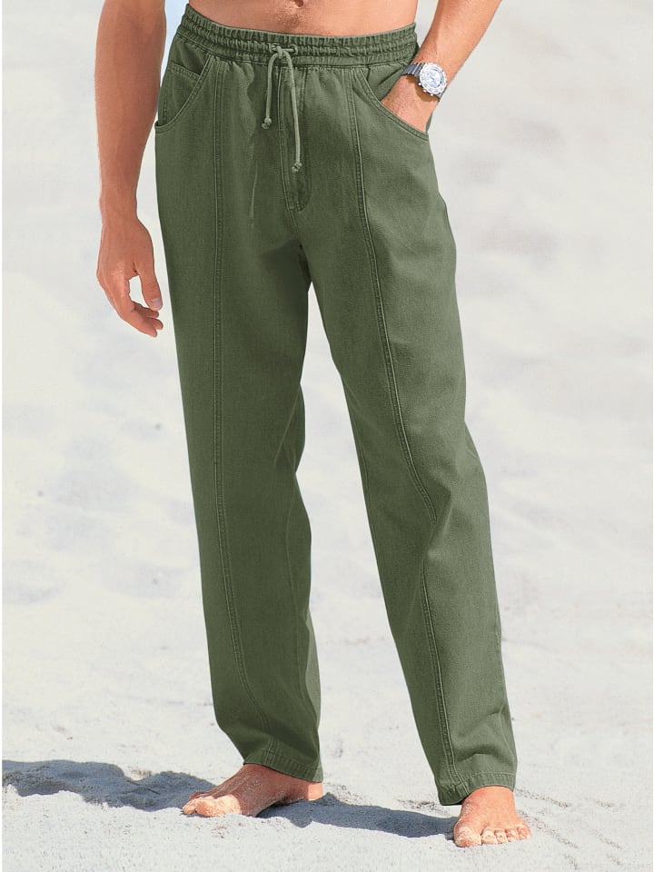 Из легкого денима: брюки с широким эластичным поясом и кулиской, 2 передних кармана и 1 карман для монет. 1 задний карман.