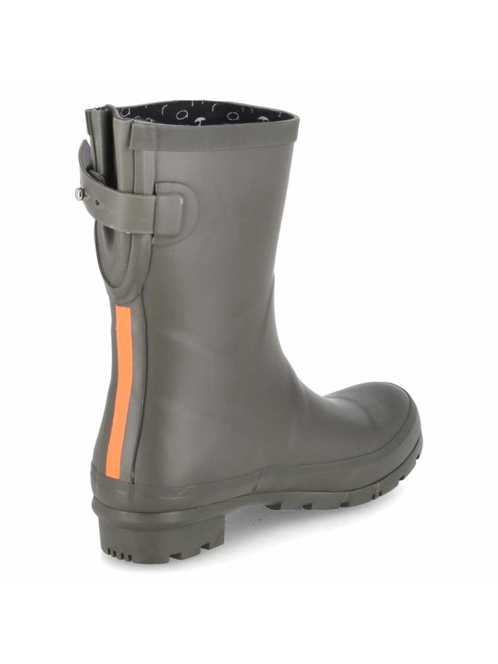 Эти женские резиновые сапоги от Rajn отличаются четкими линиями и продуманными деталями. Прочный водоотталкивающий верх из зеленой резины сочетается с современным синтетическим дизайном, закругленным носком и блочным каблуком высотой 3 см. Легко надеваются, а регулируемое голенище позволяет увеличить ширину до 11 см благодаря ремешку сзади - идеально для разных размеров икры или более толстых носков. Внутри сапога мягкая текстильная стелька с удобной амортизирующей сменной стелькой. Усиленный носок и пятка с оранжевой неоновой полосой обеспечивают поддержку и спортивный вид; гибкая нескользящая подошва обеспечивает сцепление в сырую погоду. Идут размер в размер. Модный совет: Стеганый жилет, платье с капюшоном и толстые носки создают непринужденный образ для отдыха на природе.