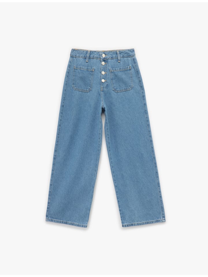 Эти джинсы сочетают в себе стильный современный дизайн и практичный комфорт. Высокая талия обеспечивает удобную посадку, а широкие брючины создают непринужденный и модный образ. Детали, обтянутые пуговицами, добавляют элегантности, делая их универсальным выбором как для повседневной носки, так и для особых случаев.