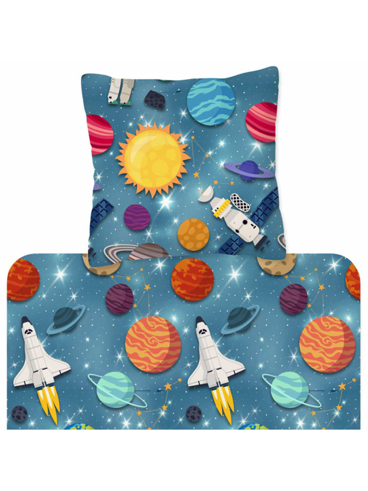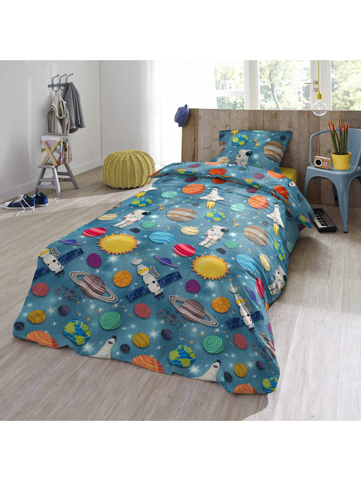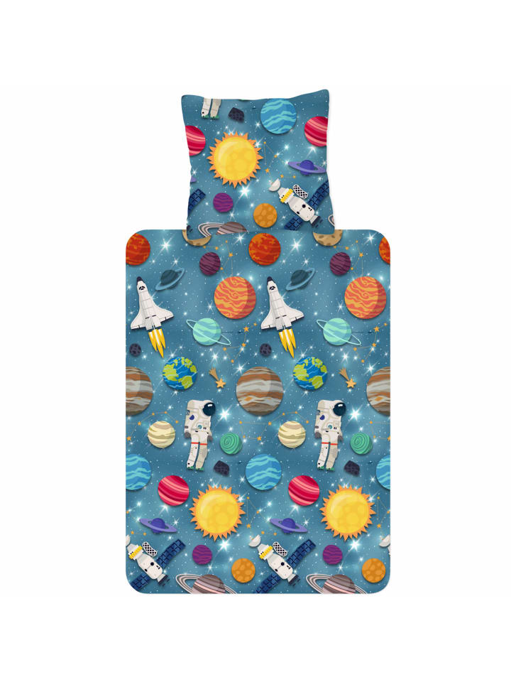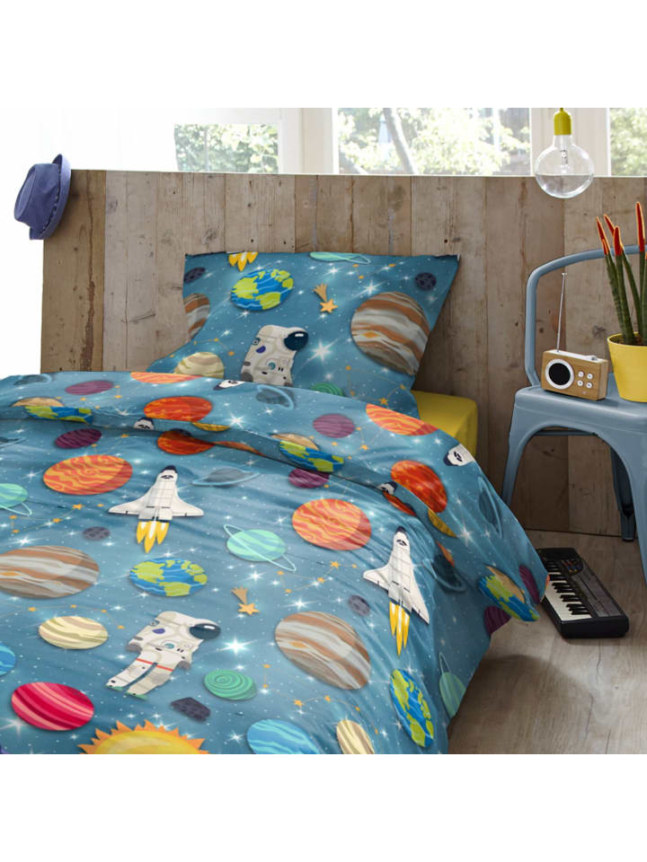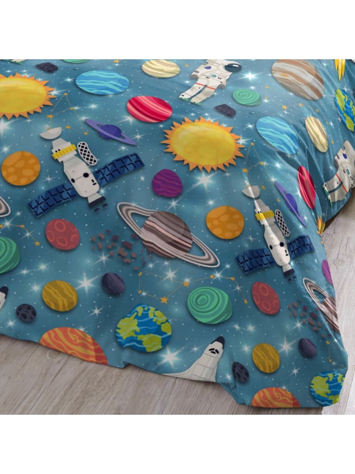 Три, два, один...! С этим галактическим постельным бельем из коллекции Trendy Bedding от ESPiCO маленькие астронавты смогут исследовать бескрайние просторы космоса! Ракеты мчатся сквозь космос, мимо Земли, Марса и Сатурна, унося маленьких астронавтов к далеким галактикам и морям мерцающих звезд. Этот уютный комплект из 100% хлопка гарантирует максимальный комфорт во время сна и дарит захватывающие сны о далеких мирах и планетах. Благодаря пушистой, мягкой и теплой фланелевой поверхности этот комплект постельного белья станет идеальным спутником для морозных зимних ночей.
