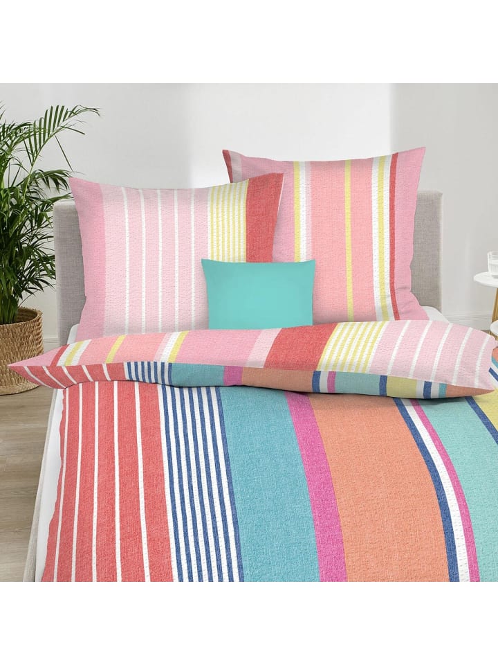 Мягкое постельное белье с нежными жатыми полосками по-настоящему уютно и идеально подходит для того, чтобы уютно укутаться. Материал впечатляет: дышащий, легкий в уходе и терморегулирующий хлопок. Его воздушный дизайн делает его идеальным для лета. Жатая ткань не прилегает к коже, что придает ей особую легкость. Более 15 лет Хольгер Генкингер и его команда специализируются на производстве и продаже постельного белья и постельных принадлежностей. Опираясь на свои знания и многолетний опыт тесного сотрудничества с клиентами, BettwarenShop разработал продукцию под собственной торговой маркой Traumschlaf (Сон Сна). Характеристики: - воздушное, легкое постельное белье - практичная застежка-молния - яркий, красочный дизайн - дышащее и приятное на ощупь - можно стирать в стиральной машине при температуре до 60°C и сушить в сушильной машине. Состав: 100% хлопок