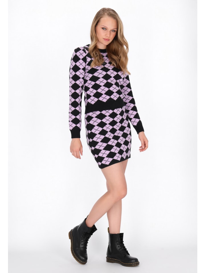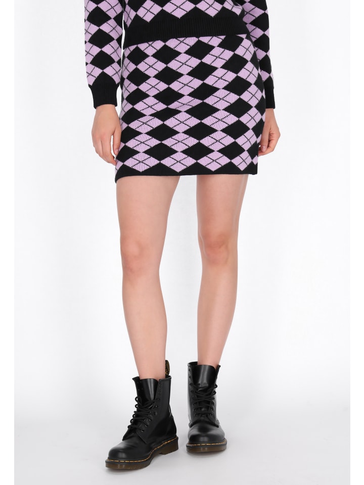 Мини-юбка прямого кроя с высокой талией из мягкого трикотажа сочетает в себе комфорт и модный молодежный стиль. Геометрический ромбовидный узор добавляет современный штрих, а приталенный крой изящно подчеркивает силуэт. Идеально подходит для повседневной носки, идеально подходит для создания непринужденных и удобных образов. Эта модель из коллекции MyMo Rocks, созданной для молодых, уверенных в себе модниц.