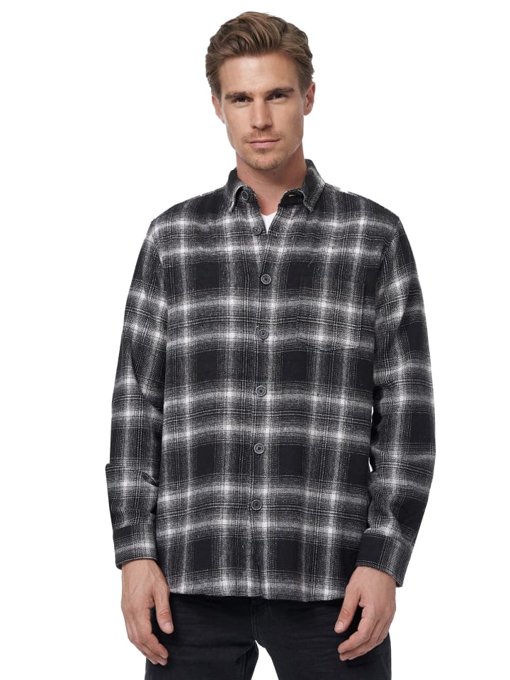Рубашка дровосека фланелевая черно-белого цвета Rusty Neal