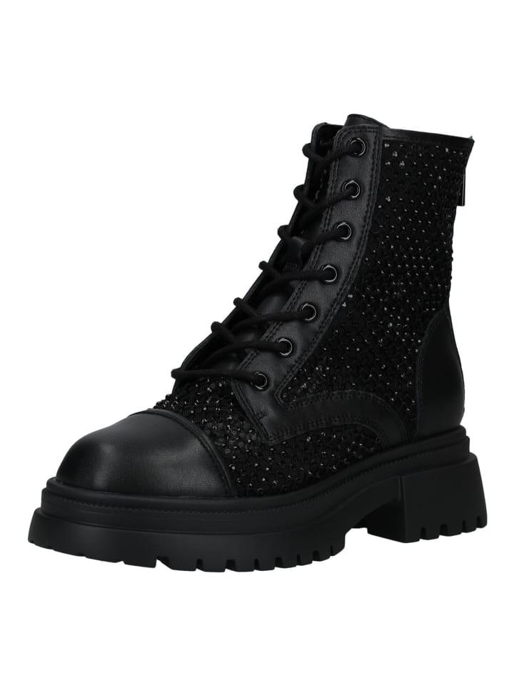 Эти стильные ботильоны на шнуровке от Steve Madden гарантированно привлекут внимание своим исключительным дизайном. Верх из черной сетки с мерцающими деталями и текстурированными кожаными вставками создает смелый и одновременно гламурный образ. Эффектная рифленая подошва не только создает стильный вид, но и обеспечивает надежную поддержку и повседневный комфорт. Молния на пятке позволяет легко надевать и снимать обувь.