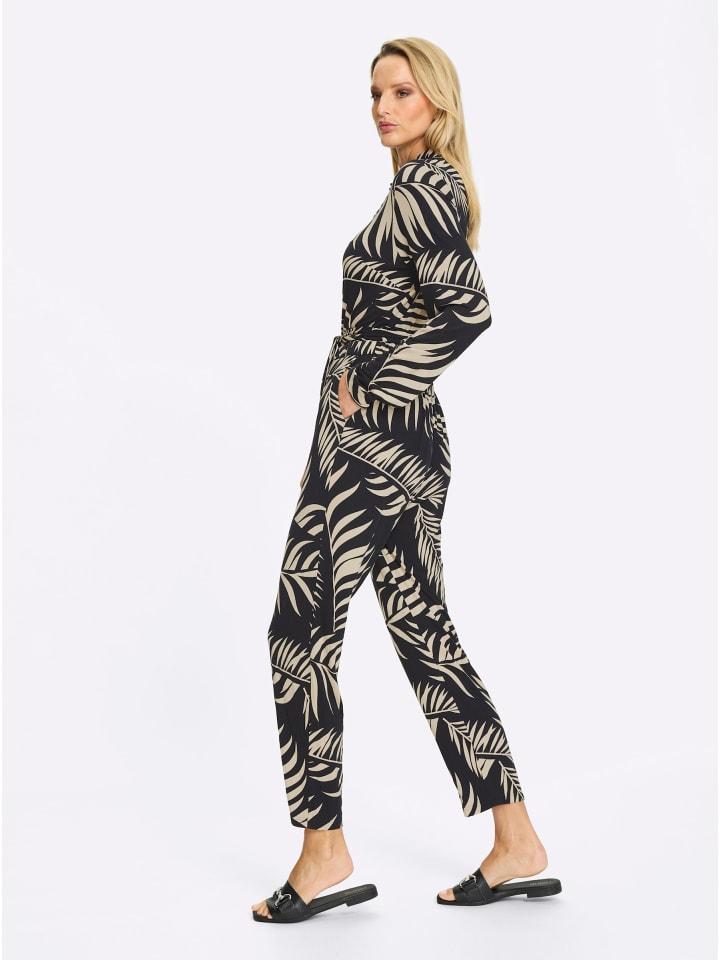 Комбинезон из джерси с эксклюзивным принтом и удобной посадкой. Отложной воротник, застежка на пуговицы до бедра. Присборенный пояс с завязывающимся поясом. Два боковых кармана. Узкие манжеты на пуговицах на длинных рукавах.