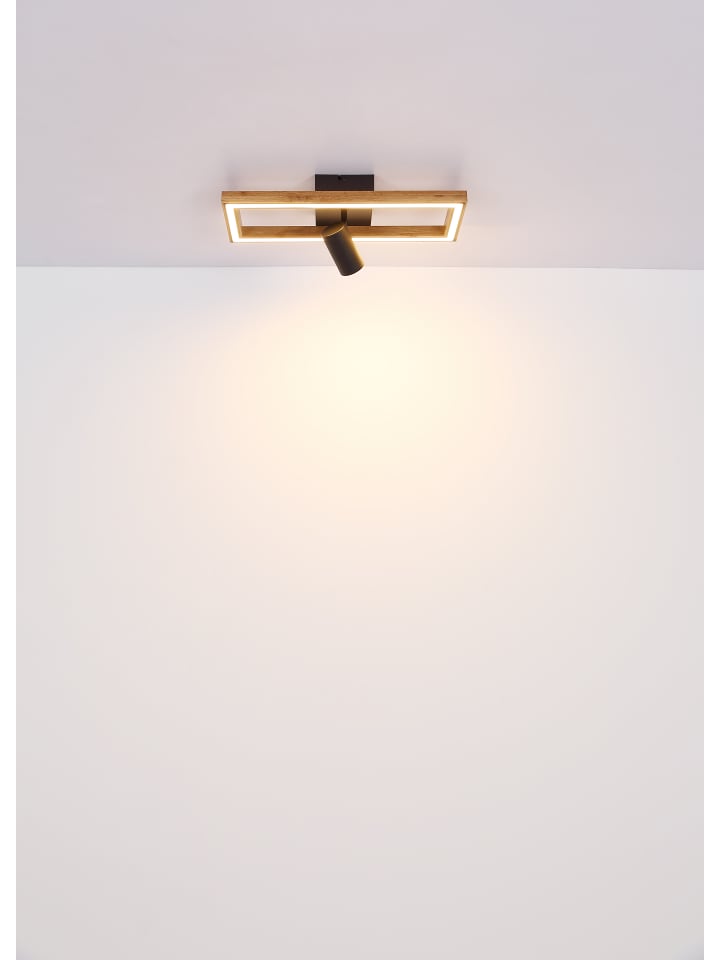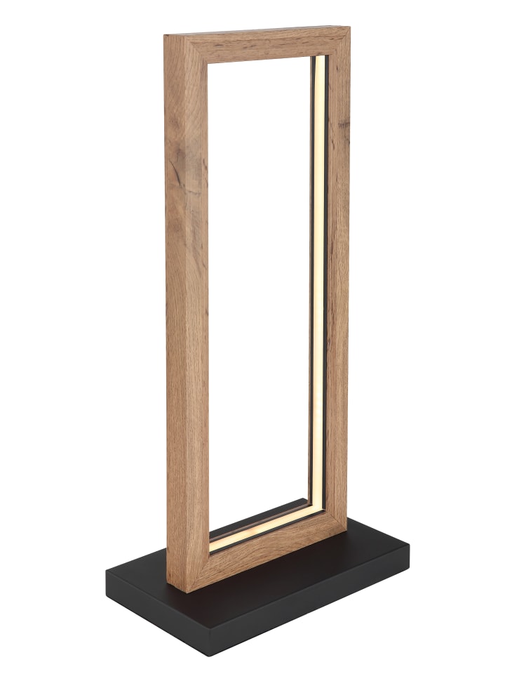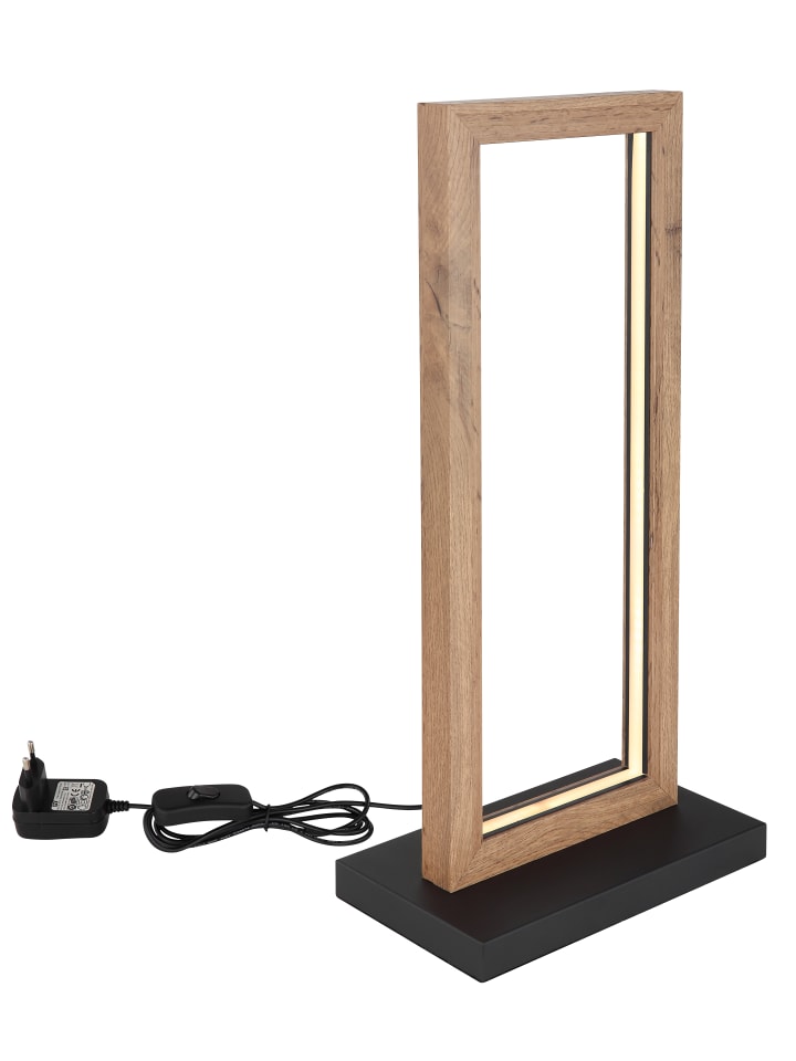Настольная лампа, матовый черный металл, МДФ с имитацией темного дерева, опаловый пластик, черный кабель из ПВХ, клавишный выключатель на кабеле, Д x Ш x В: 250 x 150 x 525 мм, длина кабеля 1500 мм, в комплекте светодиод 12 Вт 230 В, источник света 1380 лм, световой поток 450 лм, цветовая температура 3000 К