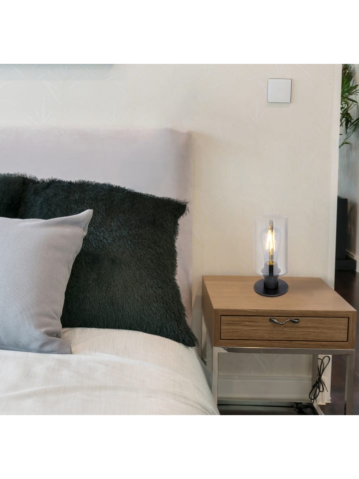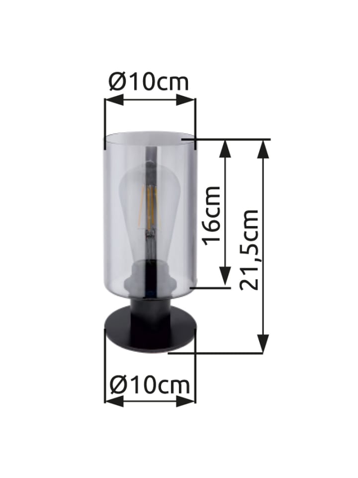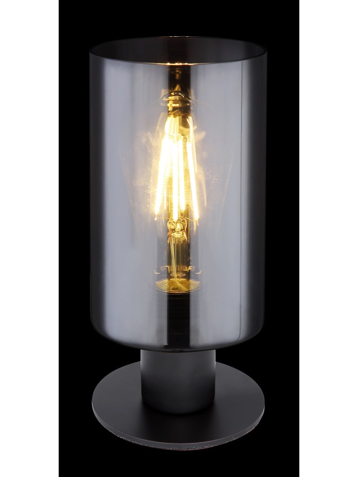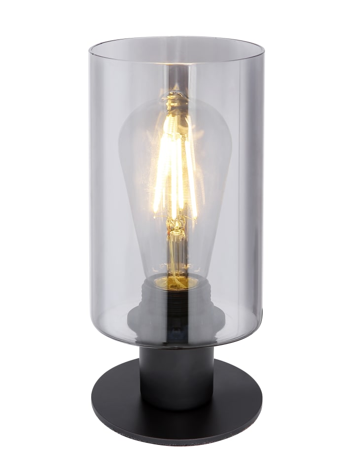 Настольная лампа, металл, матово-черный, стекло, клавишный выключатель на проводе, ø: 100 мм, H: 215 мм, без 1 цоколя E27 60 Вт 230 В