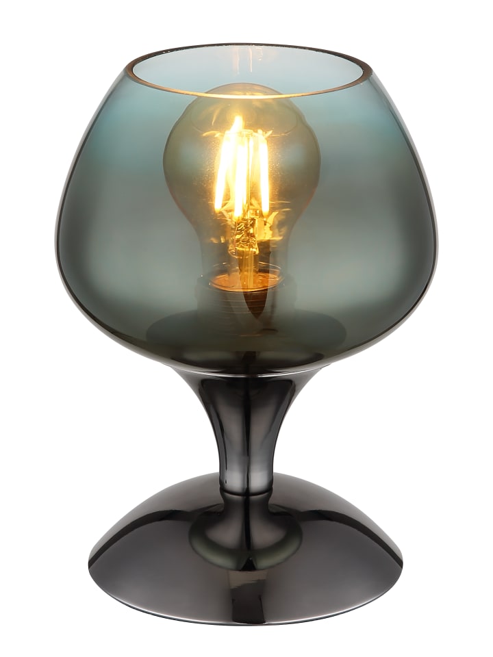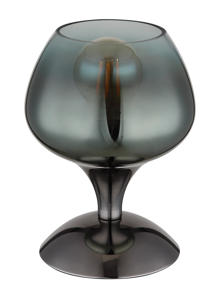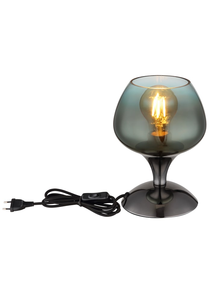 Настольная лампа, металл, черный с хромом; зеленое прозрачное градиентное стекло; черный текстильный провод; клавишный выключатель на проводе; диаметр: 150 мм; высота: 205 мм; длина провода: 1500 мм; лампочка в комплект не входит: 1 x E27 40 Вт 230 В