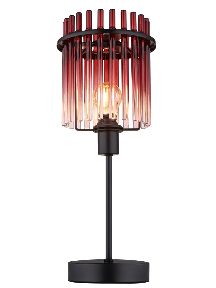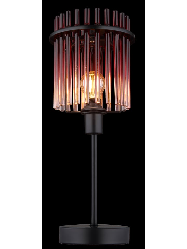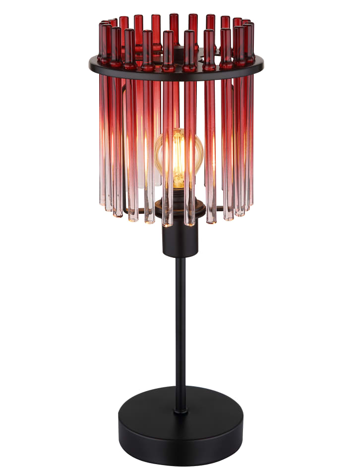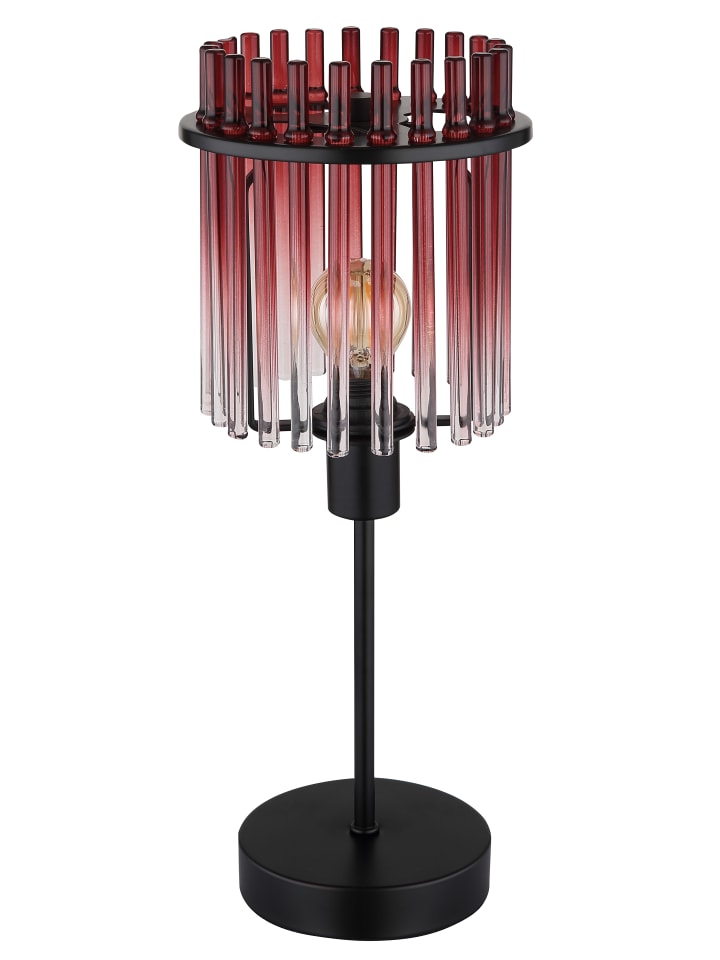 Настольная лампа, матовый черный металл, ежевичного цвета, красный, прозрачные стеклянные стержни, черный ПВХ-кабель, клавишный выключатель на кабеле, ø: 150 мм, H: 375 мм, длина кабеля 1500 мм, без 1 цоколя E14 40 Вт 230 В