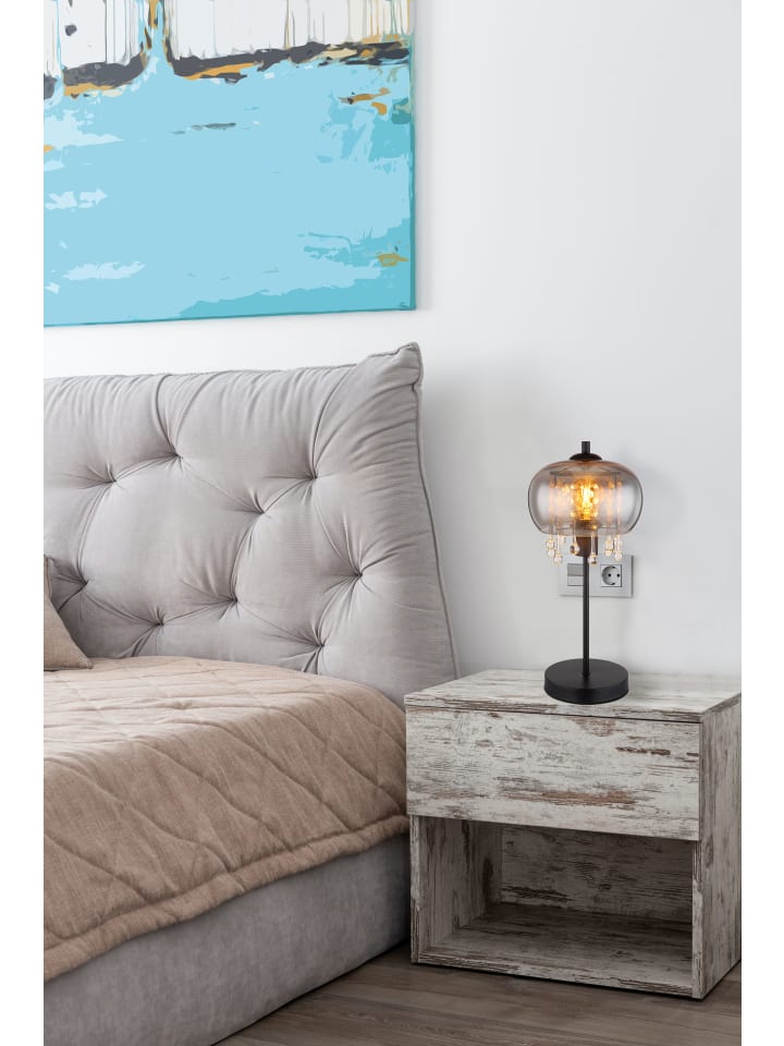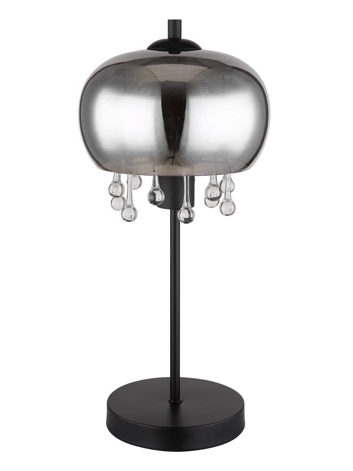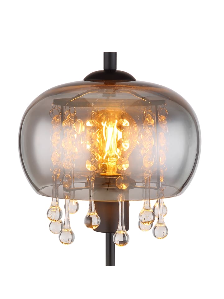 Настольная лампа, матовый черный металл, дымчатое стекло, прозрачные стеклянные кристаллы, черный текстильный провод, клавишный выключатель на проводе, ø: 210 мм, H: 450 мм, длина провода 1500 мм, без 1 светодиодной лампы E27 6 Вт 230 В