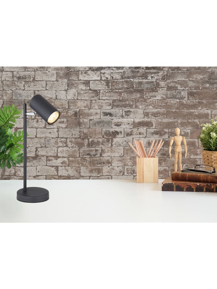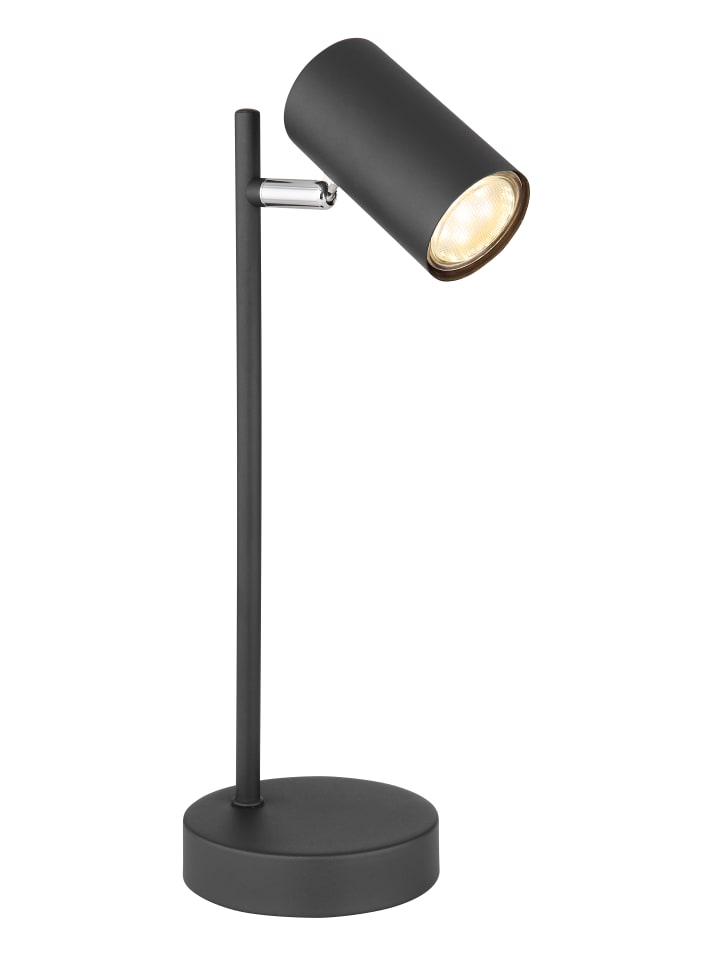 Настольная лампа, металл, матово-черный, хромированная, металл, матово-черный, ø: 120 мм, H: 350 мм, длина кабеля 1500 мм, без 1 светодиода GU10 5 Вт 230 В