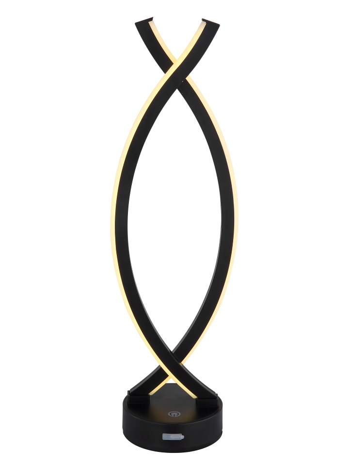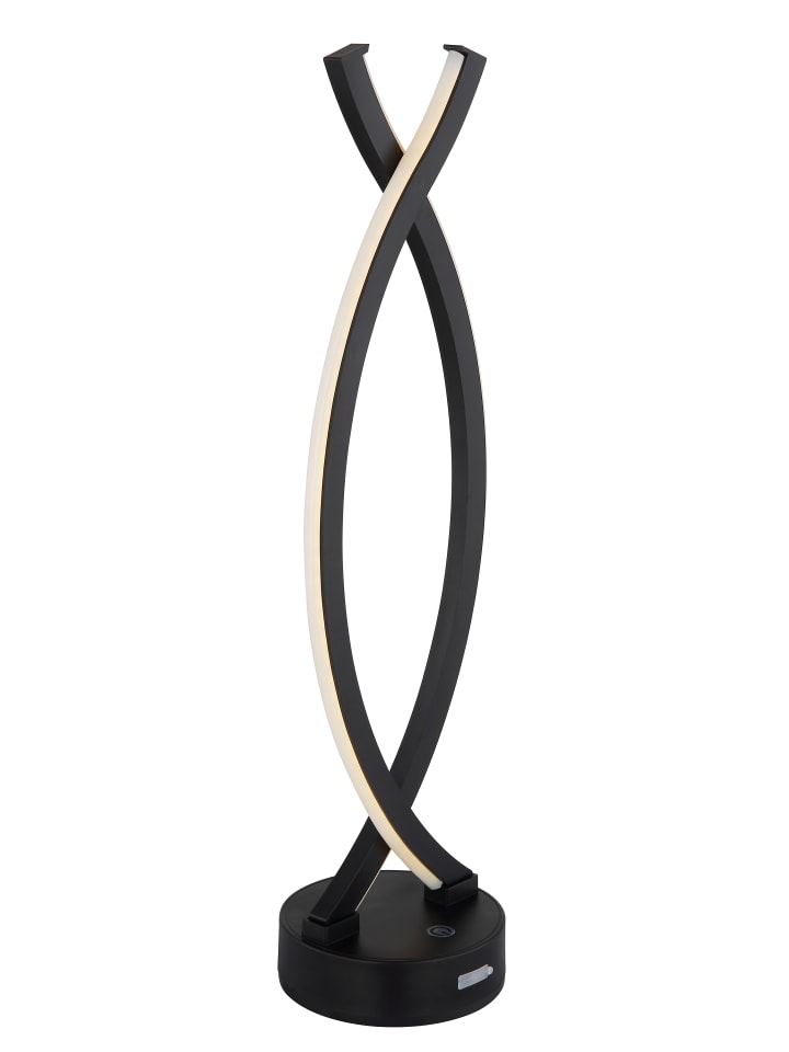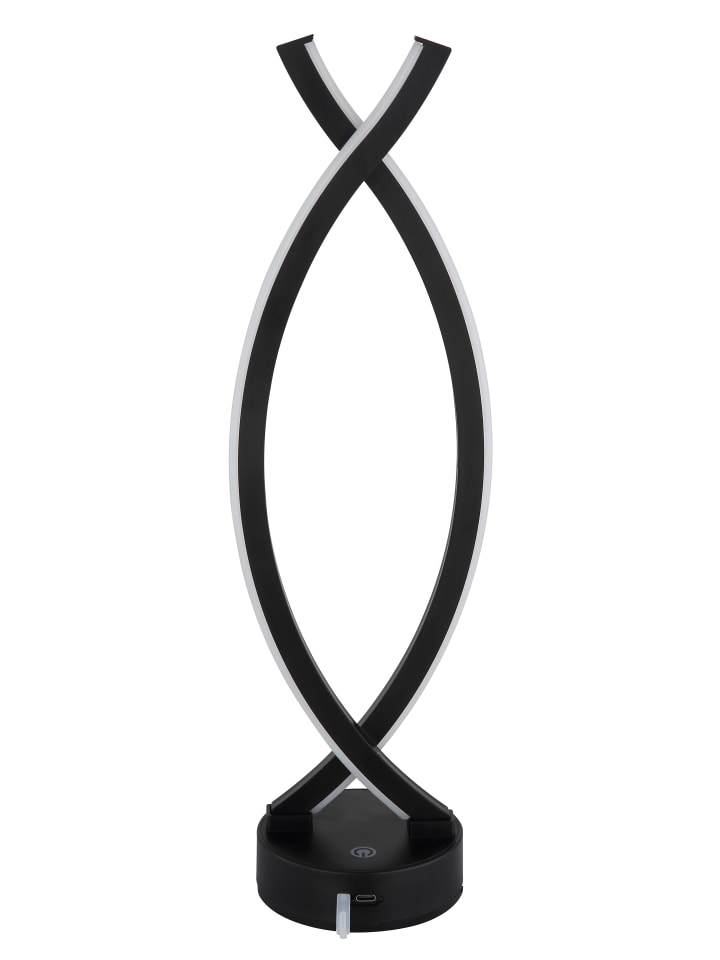Настольная лампа, матовый черный пластик, опаловый пластик, белый ПВХ-кабель, сенсорное включение/выключение, плавный сенсорный диммер, USB-A 2.0 - USB-C, в комплекте батарейка CR18650 1800 мАч 3,7 В, размеры (Д x Ш x В): 125 x 100 x 410 мм, длина кабеля: 1000 мм, в комплекте светодиод 1 Вт 230 В, источник света 70 лм, световой поток 25 лм, цветовая температура 3000 К