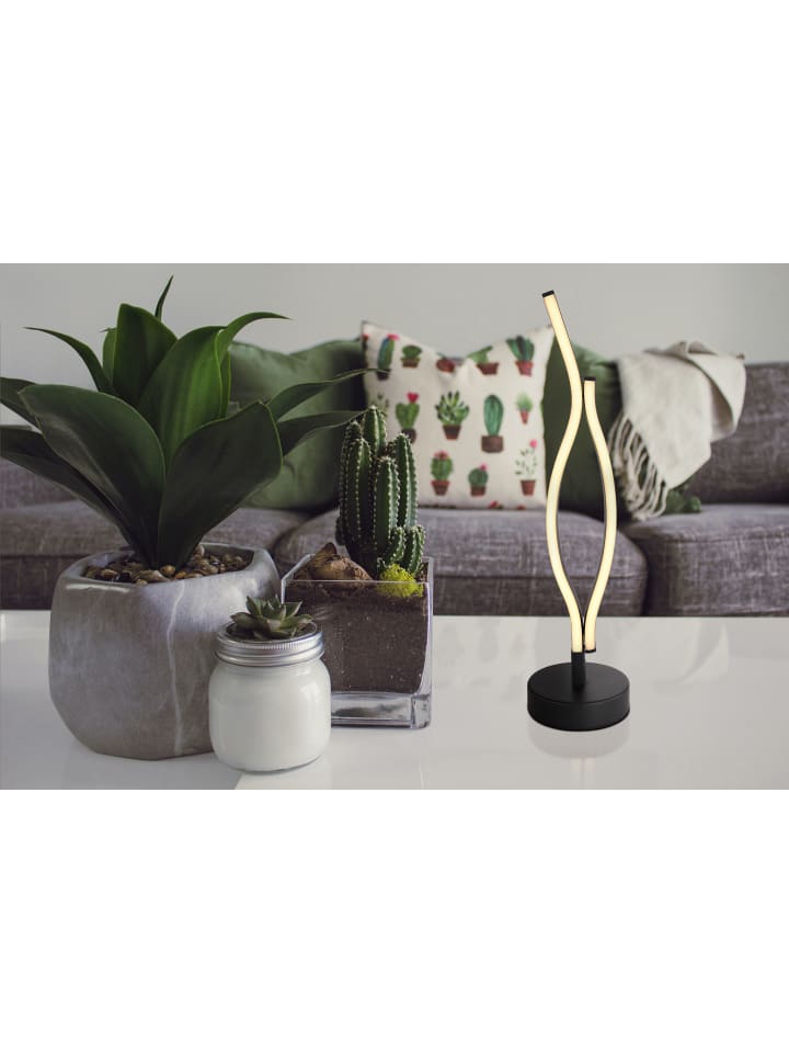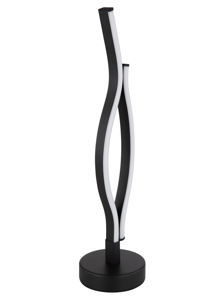 Настольная лампа, металл матово-черный, опаловый пластик, алюминий матово-черный, кабель ПВХ черный, клавишный выключатель на кабеле, диаметр: 120 мм, высота: 470 мм, длина кабеля: 1500 мм, в комплекте светодиод 12 Вт 230 В, источник света: 1430 лм, световой поток: 460 лм, цветовая температура: 3000 К