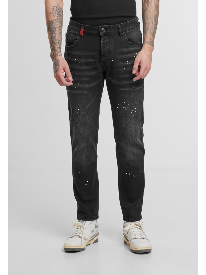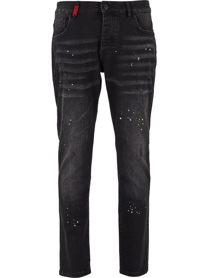 Джинсы Slim Fit с облегающим силуэтом, зауженным кроем и современной посадкой стандартной длины. Материал из эластичного хлопка обеспечивает свободу движений и удобную посадку благодаря дополнительной эластичности, а средняя посадка обеспечивает комфорт. Дизайн отличается классической застежкой на молнию и пуговицы, характерными потертостями, такими как едва заметные рваные элементы, заметные складки на бедрах и акценты в виде брызг краски, а также типичным пятикарманным кроем; узкий подол подчеркивает минималистичные линии. Инструкция по уходу: для поддержания формы и внешнего вида достаточно простой стирки.