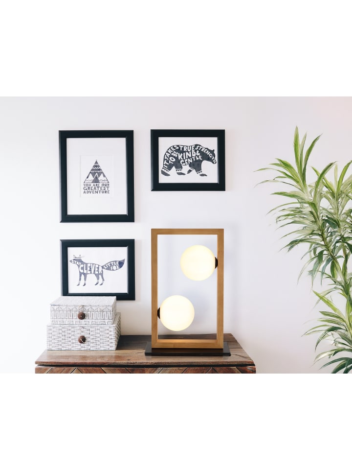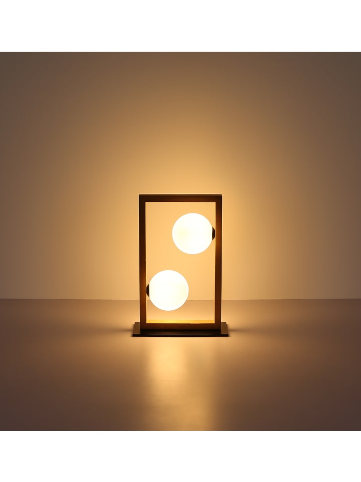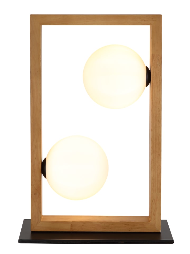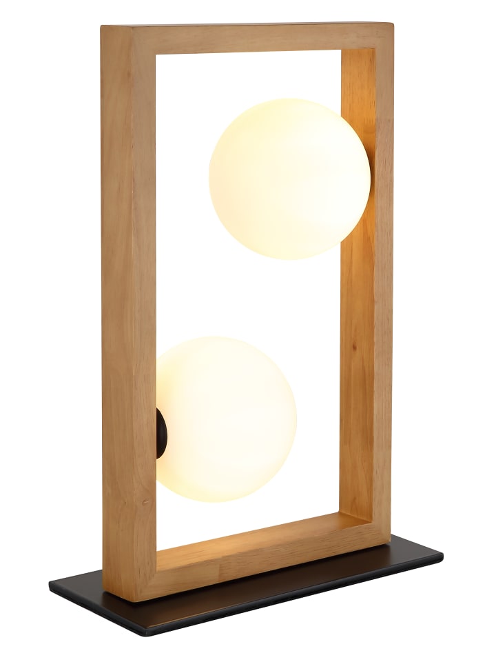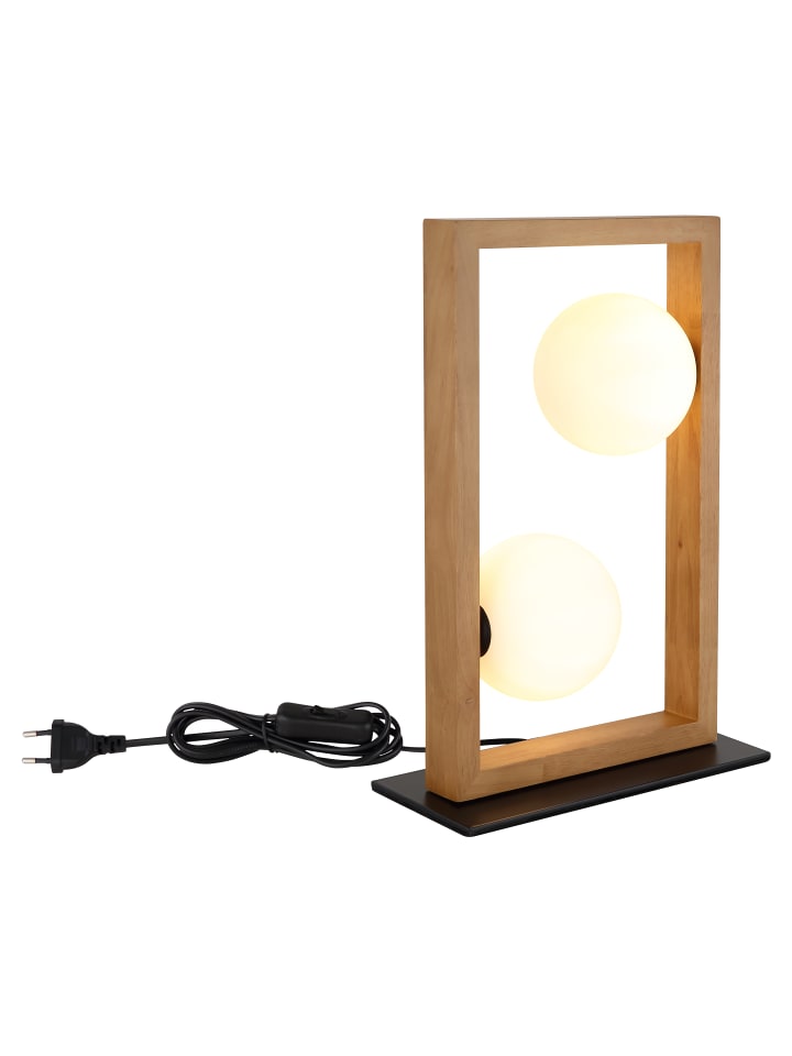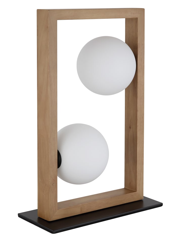 Настольная лампа, матовый черный металл, коричневое дерево, плафоны из опалового стекла, черный кабель из ПВХ, клавишный выключатель на кабеле, Д x Ш x В: 280 x 120 x 400 мм, длина кабеля 1800 мм, без учета 2 лампочек G9 5 Вт 230 В