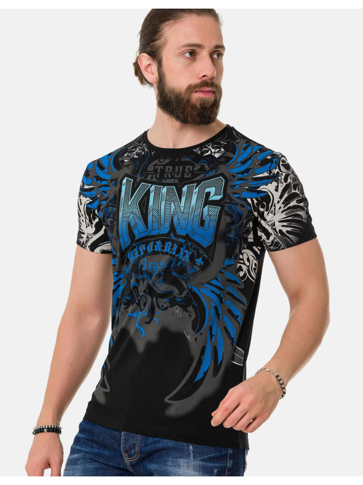 Вы не ошибетесь с этой мужской футболкой от Cipo & Baxx. Дизайн с королевскими принтами подчеркнет ваш модный стиль и легко украсит любой наряд, а исключительный комфорт порадует вас.