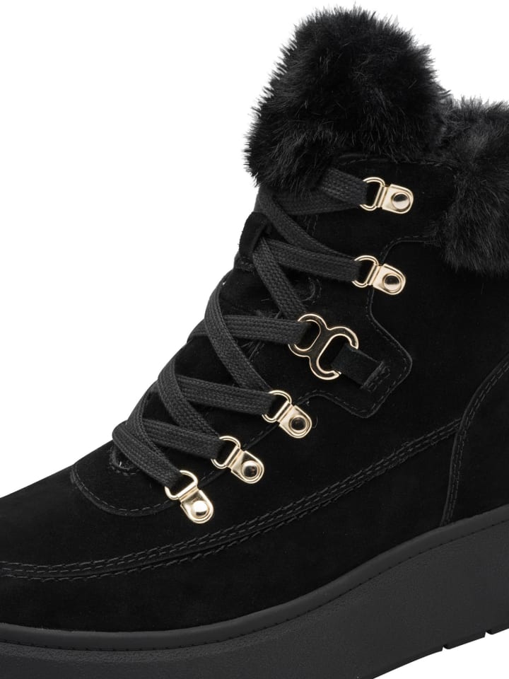 Создайте яркий образ в прохладную погоду в этих ботинках Tamaris на шнуровке. Меховой воротник обеспечивает уютное тепло и добавляет нотку непринужденного шика. Прочная платформа, оригинальная подошва и воронкообразный каблук обеспечат вам комфорт и уверенность даже в долгие дни. Золотые пряжки и плетеные шнурки создают современный образ, идеально подходящий для осенней прогулки или поездки за город. Покажите свой стиль и всегда оставайтесь верны себе!