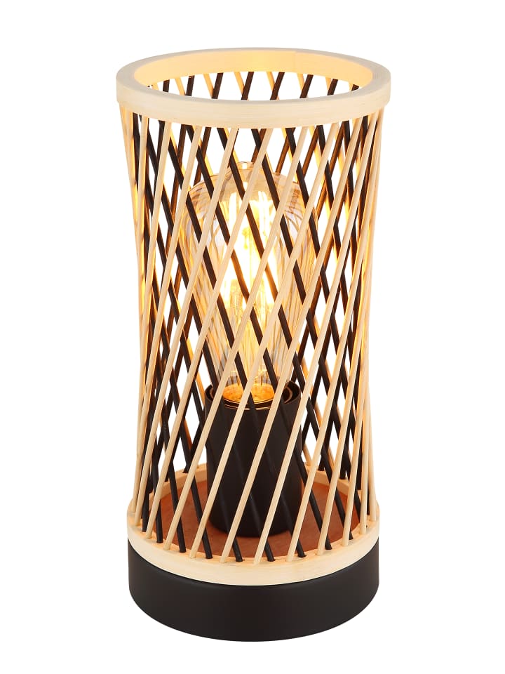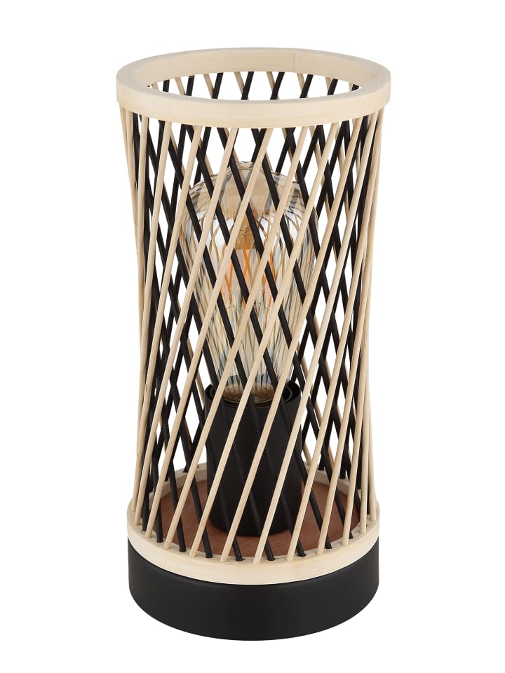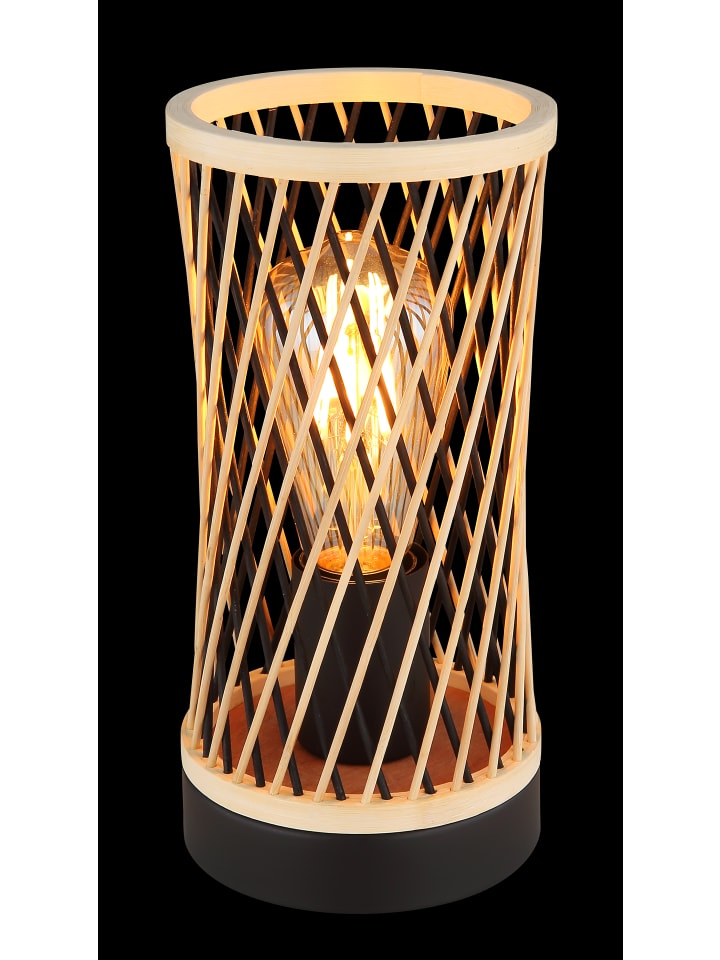 Настольная лампа, металл матово-черного цвета, бамбук натурального цвета, матово-черный, черный кабель из ПВХ, клавишный выключатель на кабеле, диаметр: 120 мм, высота: 248 мм, длина кабеля: 1500 мм, без 1 светодиода E27 10 Вт 230 В