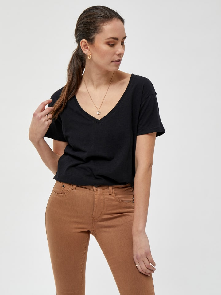 Красивая и простая футболка. Футболка с глубоким V-образным вырезом и короткими рукавами.