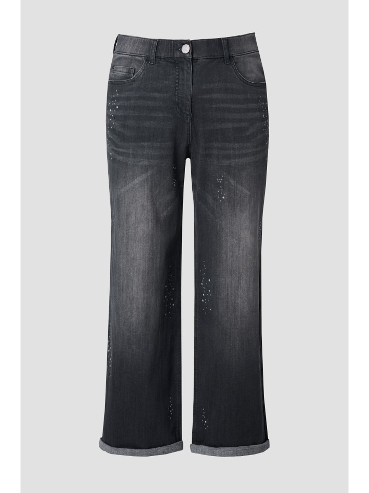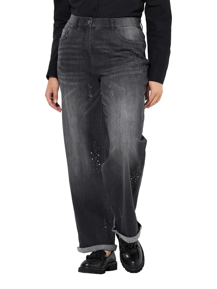 Джинсы Mary, широкие и эластичные, удобного кроя, из мягкого денима с декоративными заклепками. 5 карманов, удобный пояс со шлевками для ремня, застежка на пуговицу и молнию.