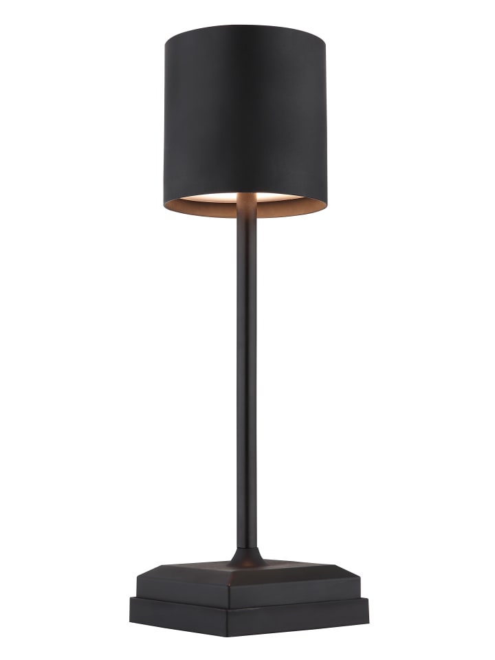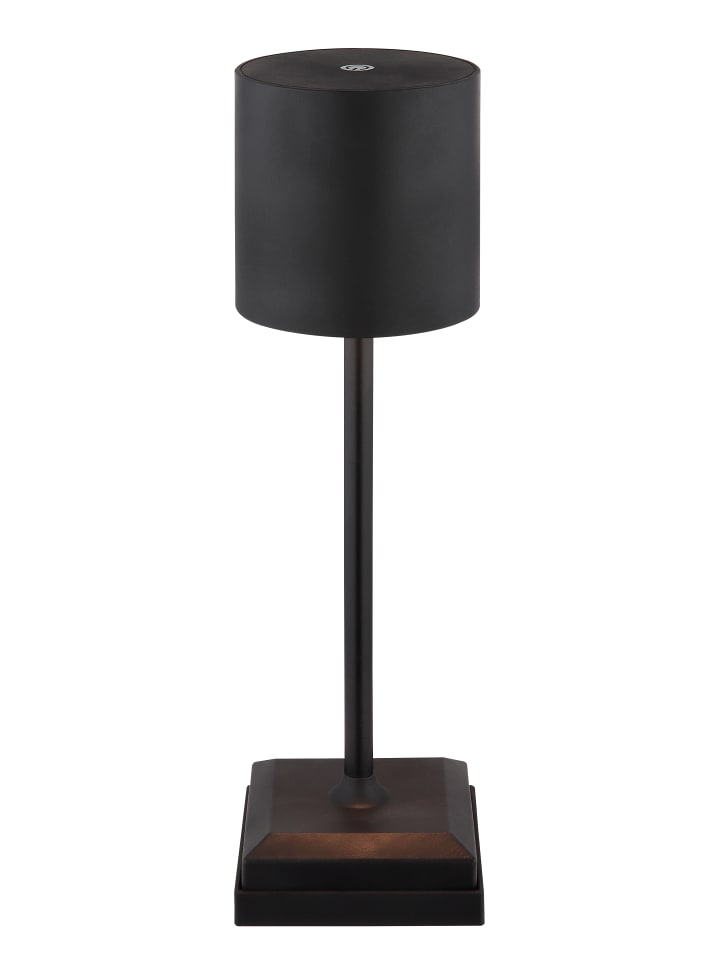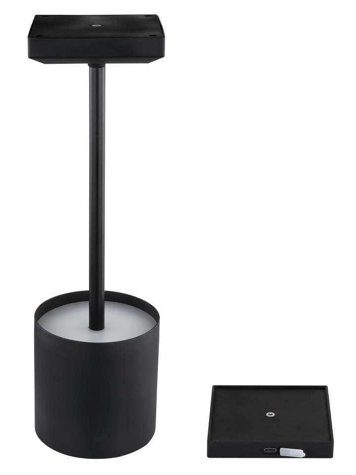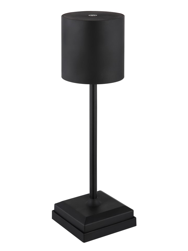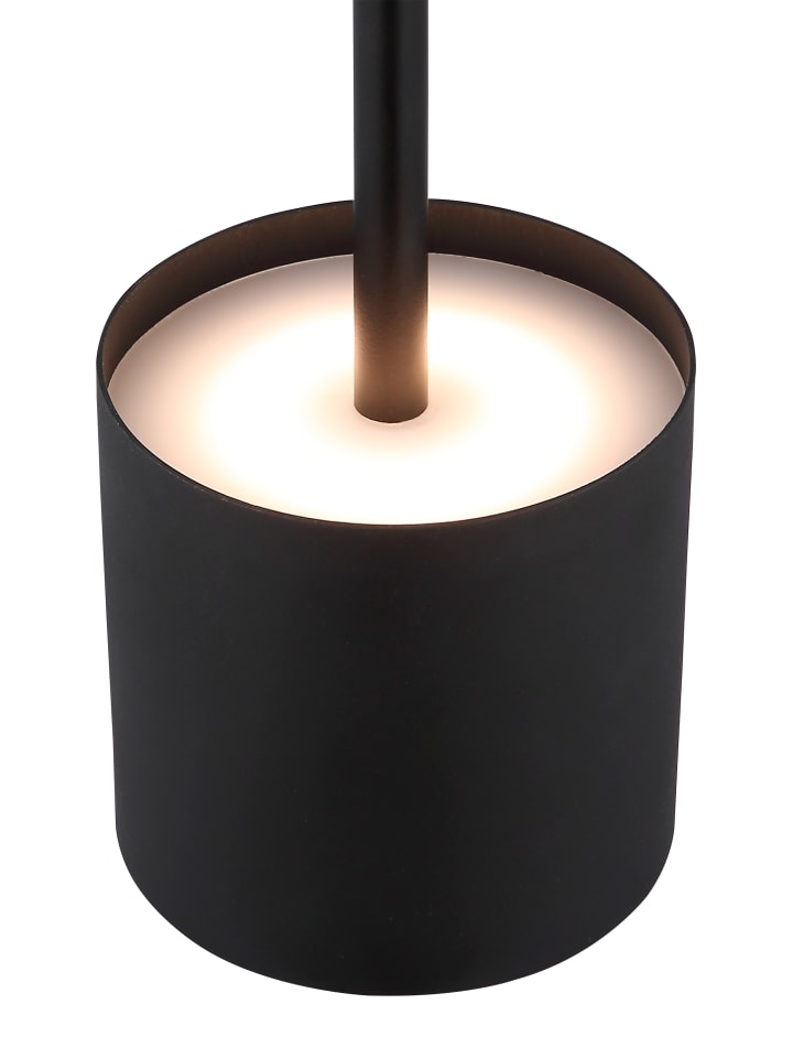Настольная лампа, матовый черный пластик, матовый черный металл, матовый черный пластик, опаловый пластик, черный кабель из ПВХ, сенсорное включение/выключение, плавная сенсорная регулировка яркости, адаптер в комплект не входит, USB-кабель в комплекте, USB-C на USB-C, аккумулятор CR18650 2200 мАч 3,7 В в комплекте, с зарядной док-станцией, размеры (Д x Ш x В): 97 x 97 x 320 мм, длина кабеля 1000 мм, в комплекте светодиод 230 В, источник света 180 лм, световой поток 30 лм, цветовая температура 2900 К