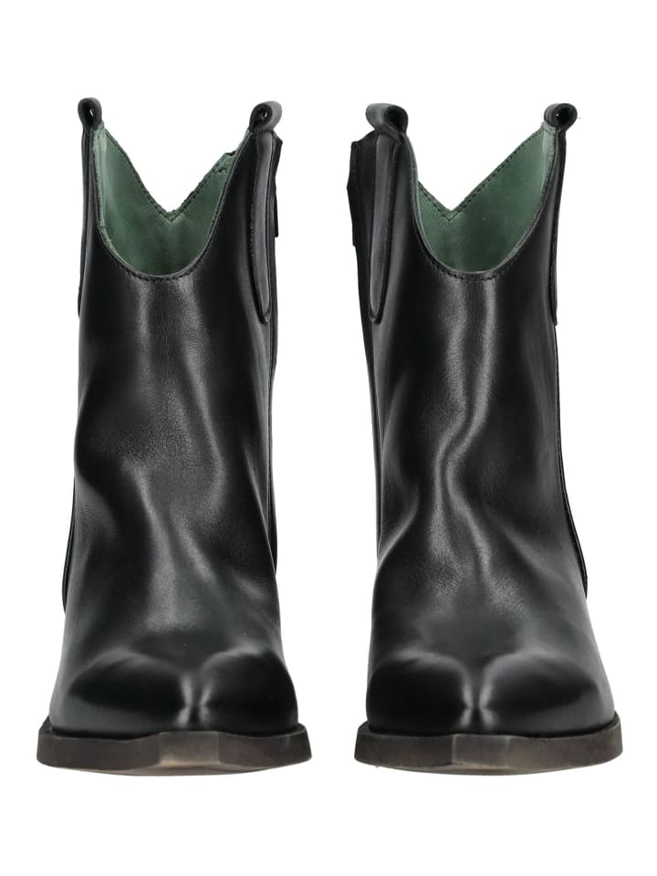 JOANNA E270 от Felmini - это ботинки в стиле вестерн, сочетающие простоту и элегантность. Изготовленные из гладкой черной кожи, они имеют острый носок, короткое голенище и боковые петли для создания непринужденного и повседневного образа. Легкие и удобные, они идеально дополнят яркие осенние наряды.