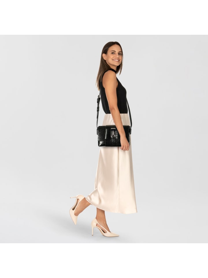 Сумка изготовлена из полиуретана, материала, известного своей прочностью и гибкостью. Она легко выдерживает суровые условия повседневной жизни, сохраняя при этом форму. Магнитная застежка гарантирует сохранность ваших вещей, но при этом легкий доступ к ним.