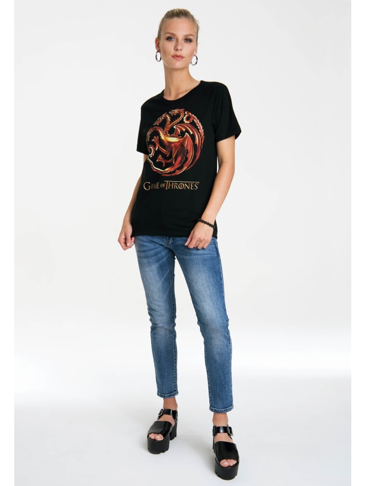 Футболка «Игра престолов - Таргариен» от Logoshirt украшена знаменитым логотипом Таргариенов. Эта футболка - настоящий маст-хэв для поклонников «Игры престолов». У нее идеальный крой - свободный, но не слишком мешковатый - и ее легко носить с собой. Благодаря высококачественной трафаретной печати в ретро-стиле, футболка выглядит как оригинал из 60-х годов. Предварительная усадка гарантирует, что футболка легко садится и сохраняет форму даже после многочисленных стирок. Футболка с принтом дракона изготовлена из 100% высококачественного хлопка. Бренд Logoshirt - это аутентичный дизайн, высокое качество и оригинальность. Используются только официально лицензированные дизайны.