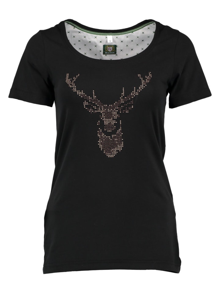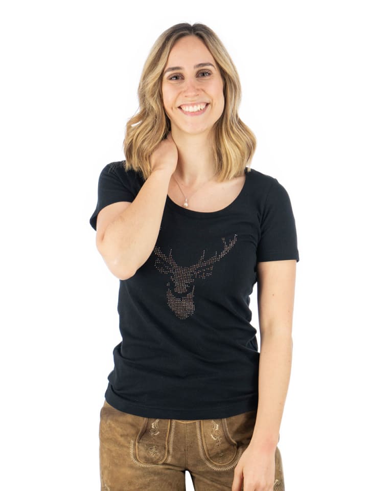 Компания OS-Trachten разместила на этой футболке крупный, но изящный принт. Изображение оленя с внушительными рогами стилизовано и выполнено в виде мелких точек, что придает ей очень элегантный вид. Материал не менее роскошен: высококачественный трикотаж из хлопка с 10% эластана. Он обеспечивает полную свободу движений. Слегка приталенный крой с круглым вырезом также выгодно подчеркивает фигуру - даже в больших размерах. Теперь вам остается только выбрать, какой из четырех прекрасных цветов лучше всего подходит к вашему наряду. Сделано в Европе.