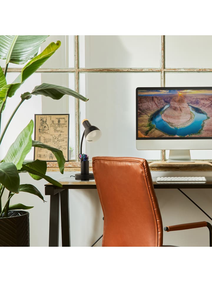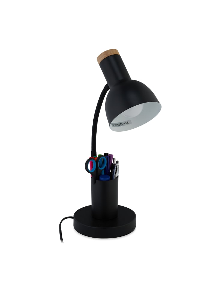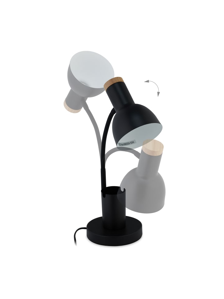 Правильное освещение имеет решающее значение для создания приятной атмосферы на рабочем месте. Благодаря регулируемому кронштейну и встроенному держателю для ручек эта настольная лампа идеально подходит для обеспечения хорошего освещения вашего рабочего стола. Она также хорошо подходит для чтения в гостиной или как прикроватная лампа в спальне. Тонкая черная шейка лампы добавляет элегантности. Эту металлическую настольную лампу можно гибко размещать в комнате благодаря длинному кабелю и тумблерному выключателю.