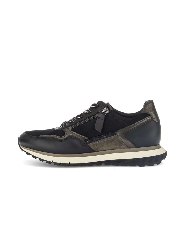 Низкие кроссовки Gabor черного цвета - идеальный выбор для стильных женщин. Верх выполнен из высококачественной кожи, что придает кроссовкам их неповторимый вид. Ширина H (широкая) означает, что эти кроссовки идеально подойдут женщинам с более широкой стопой. Эта модель оснащена съемной стелькой из переработанного материала, что не только повышает комфорт, но и соответствует принципам экологичности. Кроссовки Comfort Line предлагают больший объем в области подъема и подушечки стопы, а также больше места для пальцев ног, обеспечивая устойчивость.