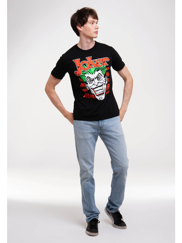 Эта футболка с логотипом украшена винтажным принтом всемирно известного Джокера. Эта мужская футболка, изготовленная из 100% чистого хлопка для максимального комфорта, - просто необходимая вещь. Бренд Logoshirt отличается аутентичным дизайном, высоким качеством и оригинальностью, используя только официально лицензированные дизайны.