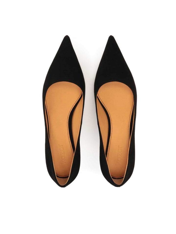 Эти классические туфли-лодочки изготовлены из высококачественной замши универсального черного цвета, которая дополнит любой образ. Прочный каблук средней высоты обеспечит комфортную ходьбу даже в течение всего дня. Кожаные туфли-лодочки - отличный выбор для делового костюма, вечерних нарядов, особых случаев и повседневного ношения. Изготовленные с максимальной точностью и заботой, они удовлетворят даже самых взыскательных женщин.