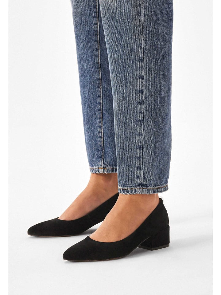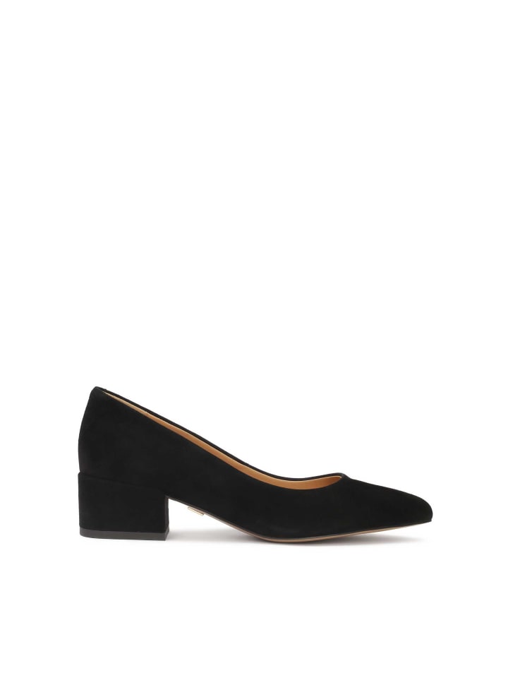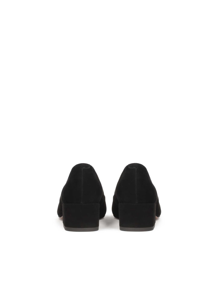Эти туфли-лодочки из тонкой бархатистой замши глубокого черного цвета - воплощение сдержанной элегантности. Замша не только подчеркивает их роскошный характер, но и гарантирует исключительный комфорт, мягко обволакивая стопу при каждом шаге. Низкий каблук-шпилька обеспечивает устойчивость и добавляет изысканности. Это идеальный выбор для женщин, которые ценят сочетание классического стиля и функциональности. Стиль этих черных туфель-лодочек делает их чрезвычайно универсальными и легко сочетаемыми с самыми разными нарядами.
