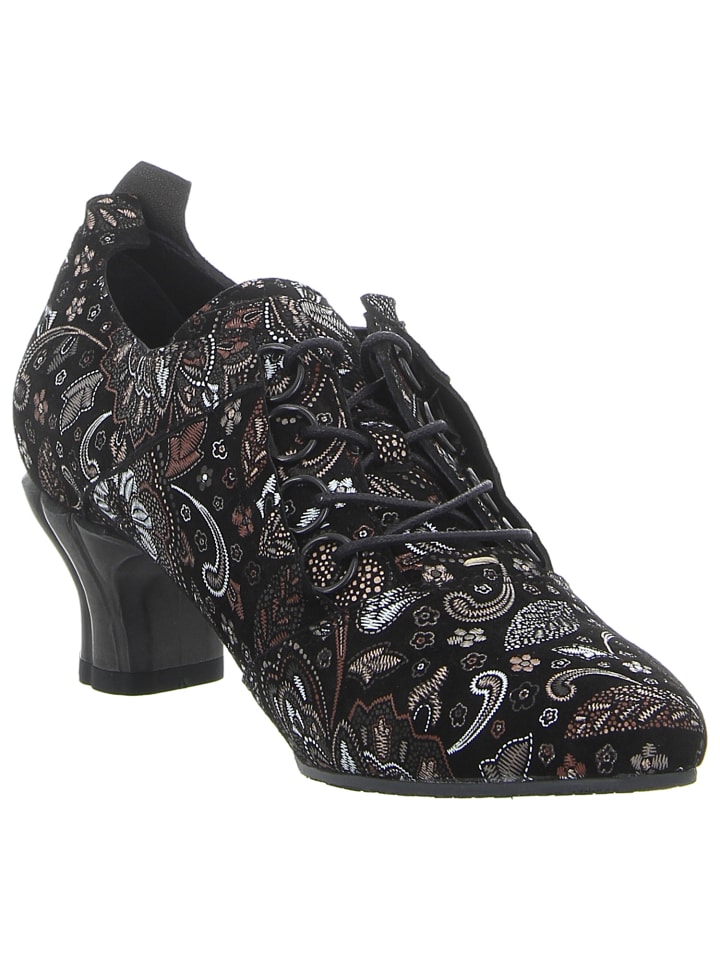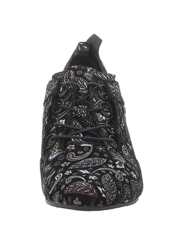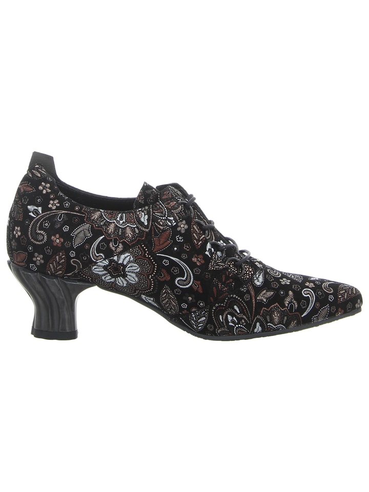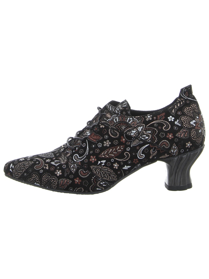 Обувь Simen всегда уникальна, и эти черные туфли на шнуровке - не исключение. Изогнутый воронкообразный каблук с красивым рельефом - единственный в своем роде. Замша также украшена цветочными мотивами. Благодаря черным круглым шнуркам туфли идеально сидят на ноге. Язычок придает общему дизайну силуэт туфель с высоким передом. Кожаная стелька с легкой подкладкой обеспечивает комфортную носку. Не упустите это уникальное творение от Simen!