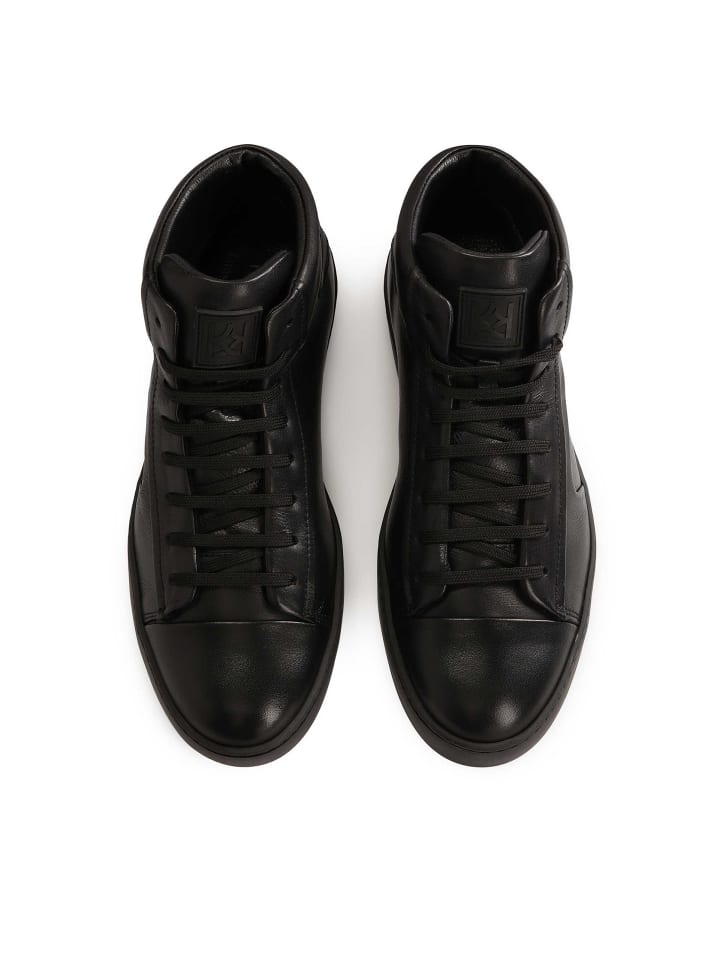 Черные кроссовки - отличный выбор для тех, кто ценит модный дизайн и комфорт. Изготовленные из натуральной кожи, они отличаются не только высоким качеством, но и элегантным внешним видом. Голенище до щиколотки обеспечивает поддержку и защиту, что важно для длительного ношения. Обувь оснащена системой шнуровки, которая обеспечивает точную посадку и устойчивость при ходьбе. Простой, но стильный дизайн этих кроссовок дополняется привлекательными деталями на подошве. Универсальный цвет и классическая форма делают их идеальным дополнением к гардеробу любого современного мужчины, который ищет функциональную и привлекательную обувь.