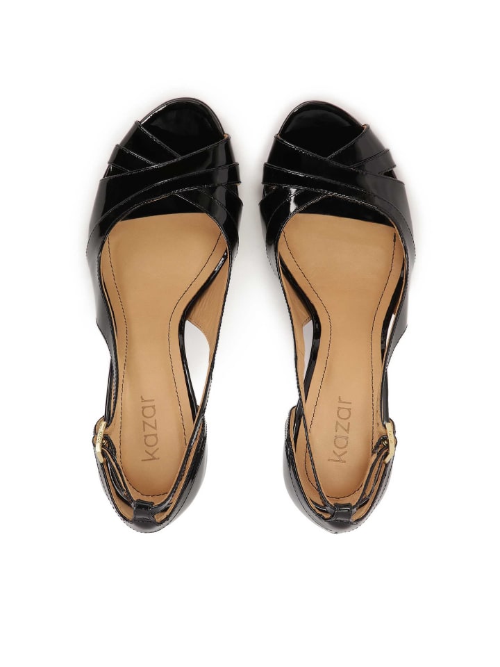 Эти черные туфли из лакированной кожи с полуоткрытым носком - шикарный и смелый выбор, идеально подходящий для женщин, ценящих элегантность в современном стиле. Лакированная кожа придает им исключительный блеск, делая их привлекательными и идеально подходящими для более официальных вечерних мероприятий. Насыщенный черный цвет в сочетании с лакированной поверхностью создает изысканный и роскошный образ. Открытый носок придает туфлям легкость и воздушность, а встроенный каблук обеспечивает надежную поддержку. Вырезанный полуоткрытый носок - интересный элемент дизайна, который добавляет обуви современный штрих, дополняя классические формы. Подошва из тунцовой кожи прочная и эстетичная. Подкладка из полуанилиновой овчины обеспечивает исключительный комфорт благодаря отличному влагопоглощению.
