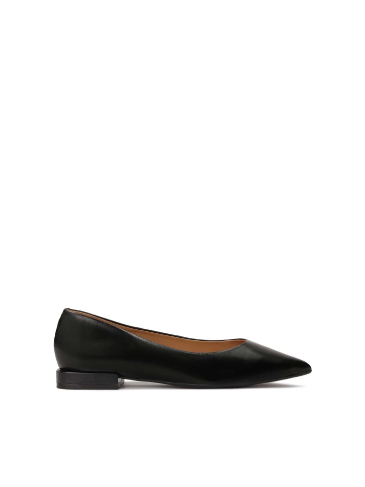 Черные туфли на плоской подошве из натуральной кожи - отличный вариант для тех, кто ценит элегантность в утонченной минималистичной форме. Гладкий верх с простым кроем без лишних украшений подчеркивает изысканность материала и вневременной характер обуви. Слегка удлиненный заостренный носок добавляет изысканности и визуально стройнит стопу. Плоский каблук обеспечивает комфортную ходьбу, делая эти туфли идеальным выбором для долгих дней, будь то работа или неформальные мероприятия. Эта модель сочетает в себе комфорт и классический стиль, что делает ее надежным дополнением к любому гардеробу.