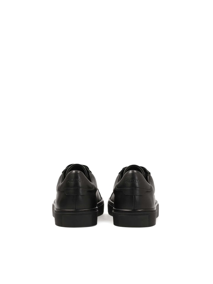 Эти черные мужские кроссовки из высококачественной натуральной кожи - современная и стильная обувь, сочетающая элегантность с повседневным комфортом. Шнуровка придает им классический спортивный вид. Верх украшен крупной тисненой монограммой KAZAR, подчеркивающей престижный характер обуви. Удобная подошва с хорошей амортизацией обеспечивает комфорт даже при длительном ношении. Эта универсальная модель подойдет как для повседневной носки, так и для более изысканного городского образа.