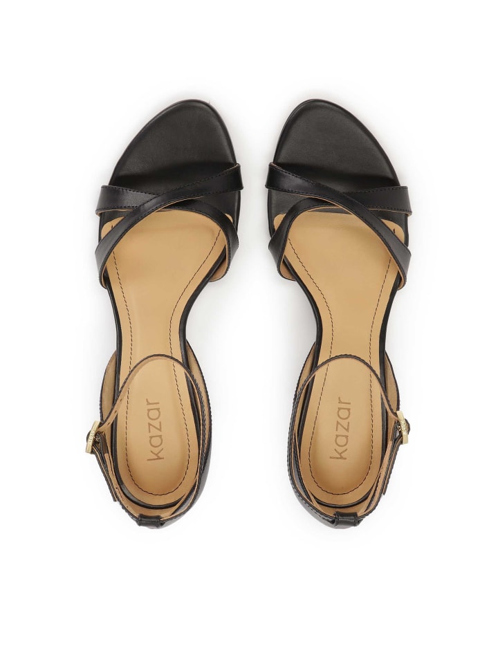 Черные босоножки из высококачественной натуральной кожи - это элегантный и изысканный стиль, идеально подходящий для особых случаев. Тонкий каблук-шпилька придает силуэту чувственность и подчеркивает женственные линии. Встроенный каблук обеспечивает устойчивость и комфорт, а ремешок на щиколотке, застегивающийся на золотую пряжку, добавляет нотку изысканности. Два перекрещивающихся ремешка спереди обеспечивают отличную поддержку и придают босоножкам современный, элегантный вид. Эти туфли сочетают в себе элементы классического дизайна с современными деталями, идеально подходящими для вечерних выходов и торжественных случаев.