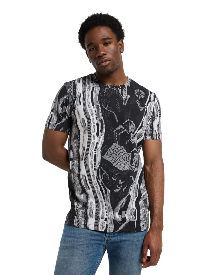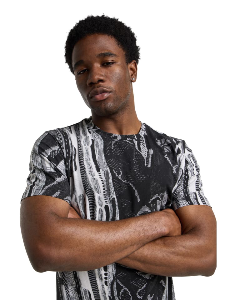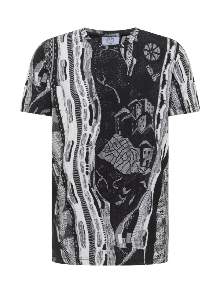 Футболка с трикотажным принтом сочетает в себе современный стиль и изысканность трикотажного кроя. Эксклюзивный трикотажный принт - центральный элемент этой футболки. Вдохновленный текстурой и эстетикой традиционных трикотажных узоров, принт придает футболке уникальный вид, одновременно непринужденный и элегантный. Эта футболка, которую можно носить как эффектный элемент с простыми брюками или как универсальную базовую вещь для создания креативных многослойных образов, украсит любой наряд.