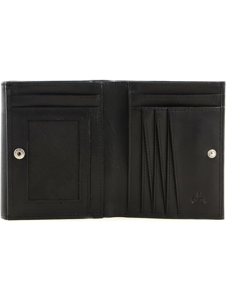 Детали кошелька: o Размеры в закрытом виде: ширина примерно 12 см, высота примерно 10,5 см, глубина примерно 2 см o Вес: примерно 1,5 кг 100 г o Цвет: черный o Материал: телячья кожа o Комплект поставки: кошелек VOi с биркой в подарочной коробке VOi, 1 жетон для тележки для покупок Характеристики кошелька: o Кошелек закрывается на кнопку o 6 отделений для кредитных карт, дебетовых карт, визиток и т. д. o 2 боковых кармана для удостоверения личности, календаря, фотографий и т. д. o 2 отделения для купюр o 1 сетчатый накладной карман o 4 накладных кармана o Спереди: 1 отделение для монет/сдачи на кнопке, содержащее 1 карман на молнии, 1 накладной карман и 1 слот для жетона для тележки для покупок o Оснащен защитой от блокировки RFID o Логотип VOi хорошо виден