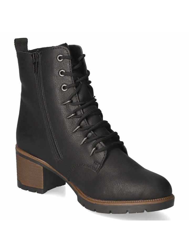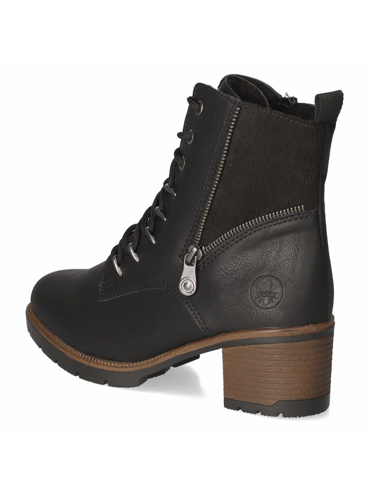 Эти ботильоны Rieker на шнуровке, надежная базовая модель для зимы, предлагают удачное сочетание комфорта и стиля. Гладкий, простой в уходе синтетический верх дополнен модными вставками под вельвет. Закругленный носок, теплая текстильная подкладка и мягкая текстильная стелька обеспечивают максимальный комфорт, а гибкая подошва обеспечивает надежную поддержку в течение всего дня. Практичность и идеальная посадка: шнуровка позволяет регулировать ширину, а молния с помощью язычка обеспечивает легкое надевание. Блочный каблук высотой 5,5 см обеспечивает элегантную высоту и устойчивость, а укрепленная пятка сохраняет форму. Изящные логотипы бренда дополняют образ. Размер соответствует размеру. Модный совет: ребристые колготки, шерстяной кардиган и юбка миди создают теплый, современный зимний образ.