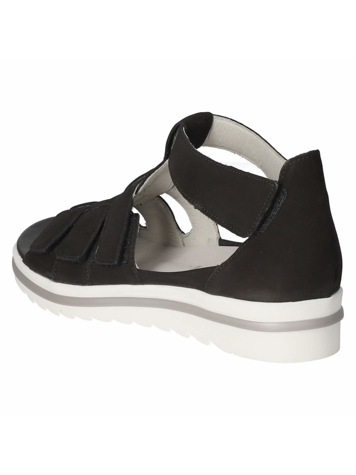 Сандалии HAKURA от Waldläufer идеально сочетают в себе повседневную практичность и элегантность. Мягкий замшевый верх удобно облегает стопу, а открытый носок подчеркивает легкость летних носков. Дышащая натуральная кожа и приятная для кожи кожаная стелька обеспечивают комфортный микроклимат даже при длительных прогулках. Четыре практичные застежки-липучки позволяют легко надевать их и регулировать посадку в течение дня. Усиленная пятка обеспечивает надежную поддержку, а амортизирующая съемная стелька при необходимости может быть заменена на ваши собственные ортопедические. Благодаря гибкой нескользящей подошве сандалии легко справляются с различными поверхностями и соответствуют размеру. Модель представлена в универсальном черном цвете и отлично сочетается как с повседневной, так и с элегантной повседневной одеждой. Модный совет: Юбка миди А-силуэта и легкий трикотажный топ создают женственный образ с непринужденным стилем.